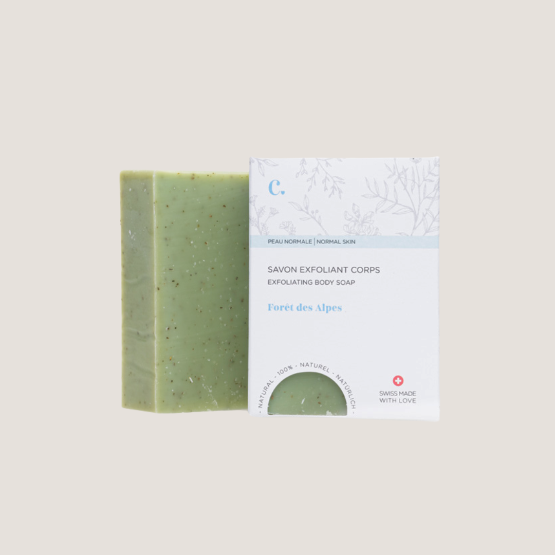 Gönnen Sie Ihrer Haut Pflege und Frische mit unserer kaltgefertigten Peeling-Seife „Forêt des Alpes“,